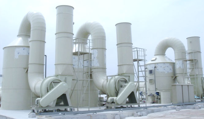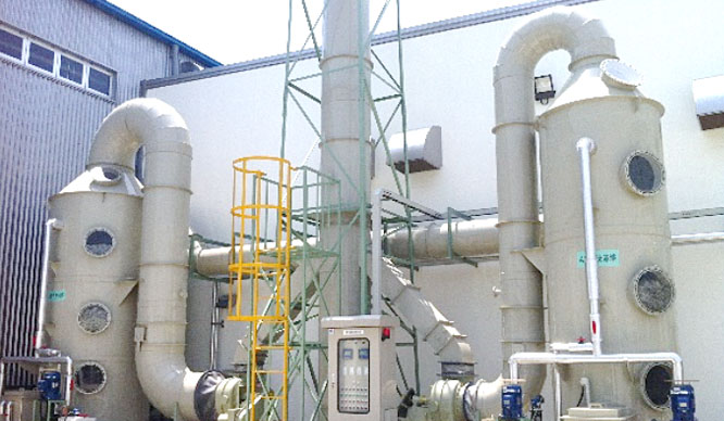 噴淋吸收塔用于處理含塵或者酸堿廢氣,廢氣通過噴淋塔體時,塔體內部循環噴灑能夠溶解吸收、中和廢氣的液態介質。如廢氣含有酸性則選擇堿液噴淋中和酸性,如廢氣含堿性則選擇酸性溶液中和。含塵廢氣則可通過循環水溶液噴淋處理。當廢氣從塔體底部進入,與噴淋塔噴淋介質接觸,接觸后廢氣被水珠包裹,包裹污染物的水珠再次碰撞表面積增大且重力增大。重力增大的情況下包裹污染物的水滴則在重力影響下落入噴淋塔底部,較重的污染物沉入塔體底部,較輕的污染物則浮于循環水體表面。噴淋塔中間通過添加填料層增加噴淋塔吸收效率。