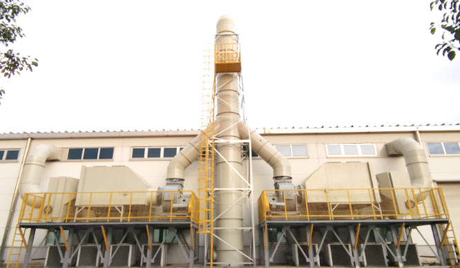 活性炭吸附塔內裝活性炭層及氣流分布器,經過合理的布風,使其均勻地通過固定吸附床內的活性炭層的過流斷面,在一定的停留時間,由于活性炭表面與有機廢氣分子間相互引力的作用產生物理吸附(又稱范德華吸附)從而將廢氣中的有機成份吸附在活性炭的表面,從而使廢氣得到凈化,達標排放。